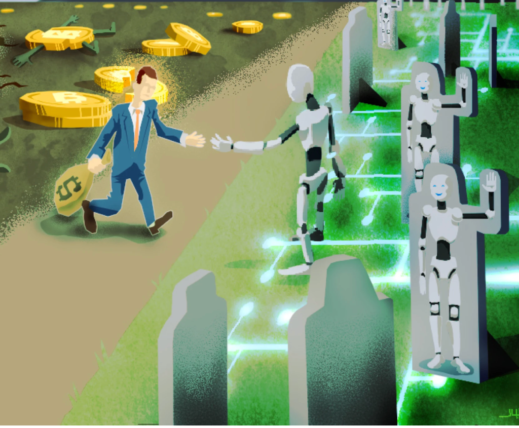 Says Koppikar, “This looks like a great market for fraudsters to chase because of the ability to ‘Theranos’ your product” with semifunctional prototypes and claims of AI being used in products that are really just powered by humans. He argues that many of the new AI companies “are complete frauds or will never have scalable revenue models,” adding, “There is going to be a staggering amount of capex burned on AI that goes nowhere.”